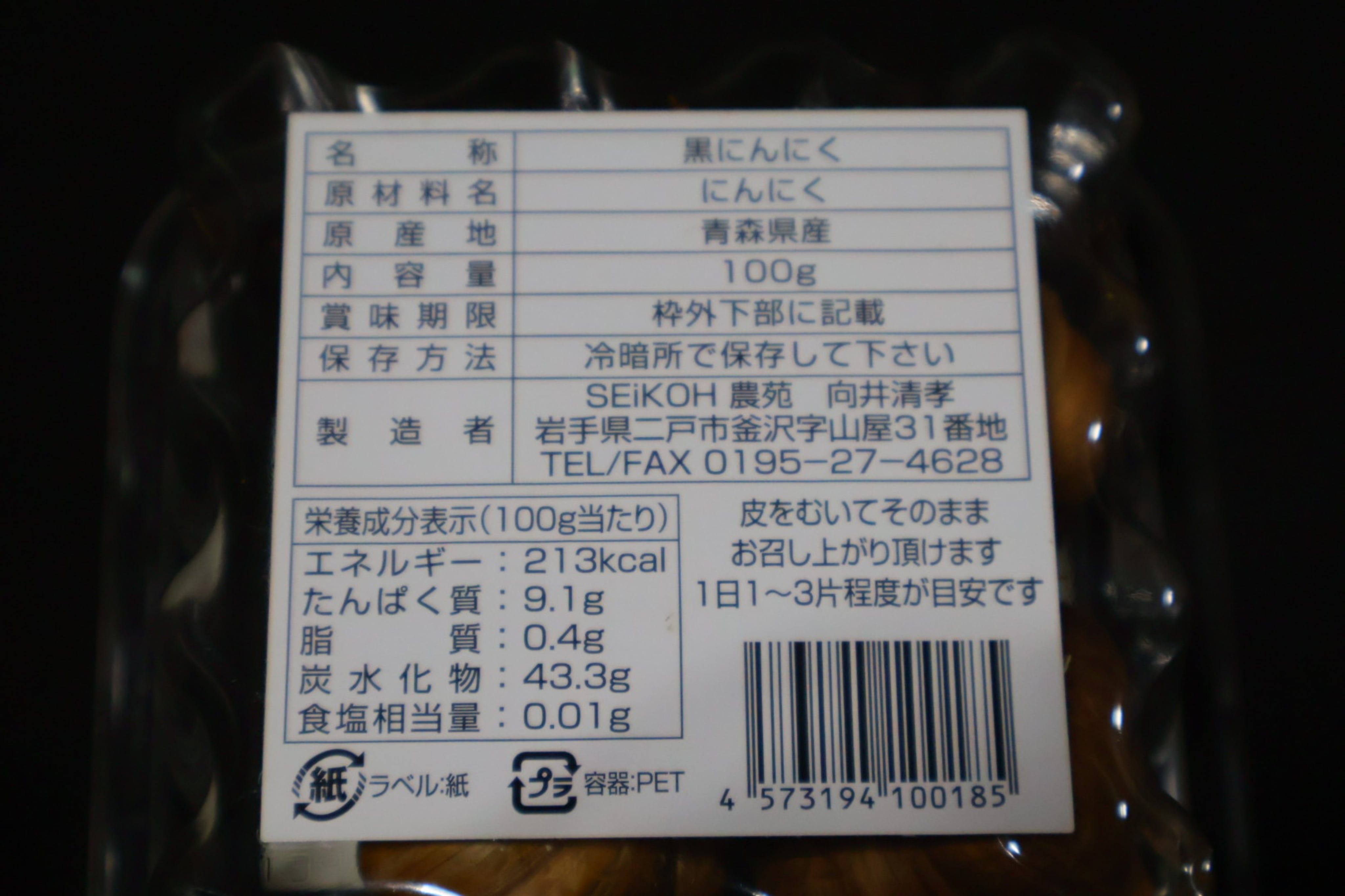 100日間じっくり熟成した黒にんにく/1ヵ月セット(計400g)